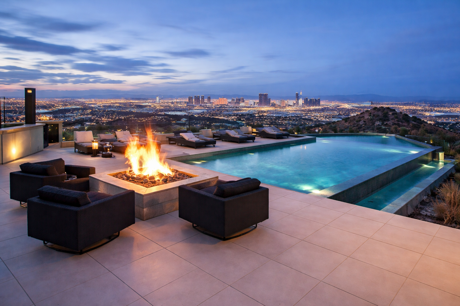 The removal of ornamental grass, tiered water pricing, and strict landscaping codes have fundamentally changed how luxury properties are designed and maintained here. Today’s high-end Las Vegas homes increasingly feature resort-style desert landscaping — dramatic, low-water, and frankly more visually compelling than a traditional grass lawn.